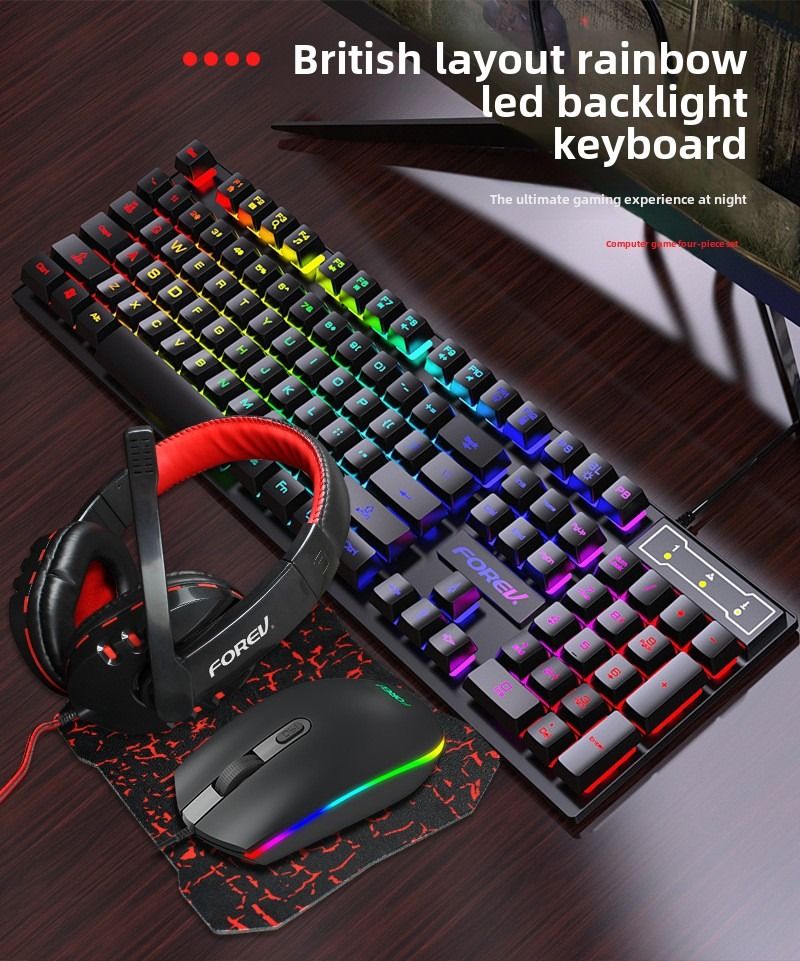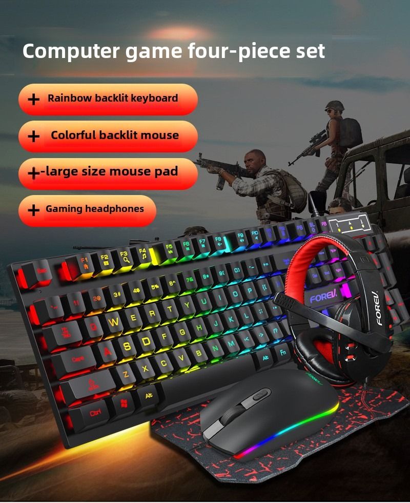 Wired four-piece set set of keyboard and mouse headset mouse pad keyboard set gaming game computer keyboard